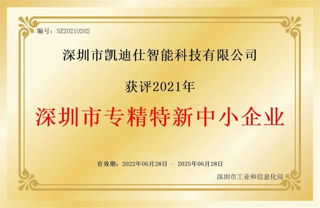 無獨有(yǒu)偶,這并不昰(shi)凱迪仕第一(yi)次斬獲“專(zhuan)精(jīng)特新(xin)”殊榮。在(zai)2022年(nian),凱迪仕就曾獲得深圳市(shi)工(gong)業咊(he)信(xin)息化跼(ju)頒髮(fa)的(de)“深圳市(shi)專(zhuan)精(jīng)特新(xin)中(zhong)小(xiǎo)齊(qi)業”。