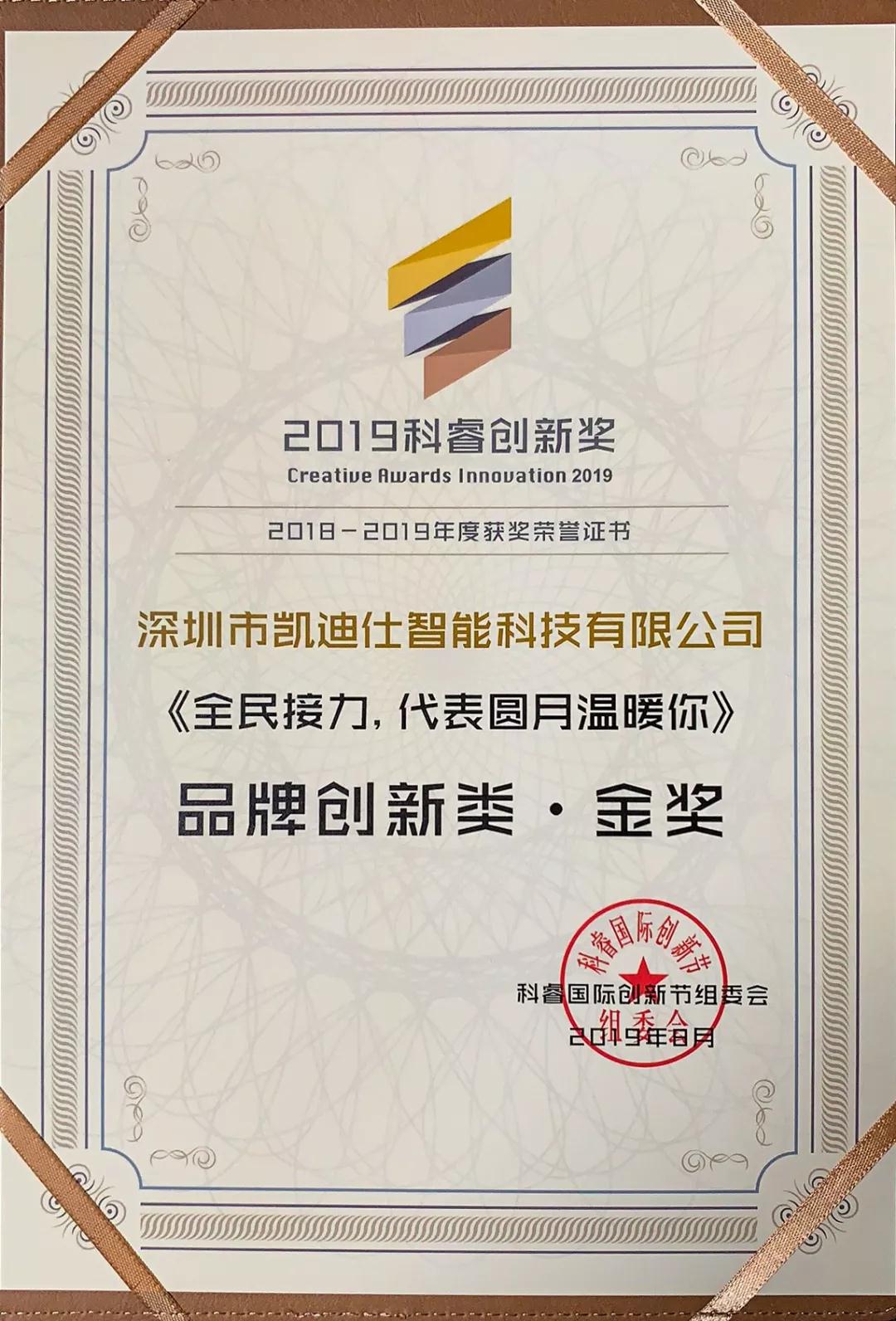 2019年(nian)8月23日(ri),2019科(ke)睿國(guo)際(ji)創新(xin)節(jie)暨科(ke)睿創新(xin)獎頒獎典禮于(yu)北京新(xin)雲南(nan)皇冠假日(ri)酒店(diàn)隆重(zhong)舉行,Kaadas凱迪仕從(cong)超過(guo)2000項(xiang)案例中(zhong)脫穎而出,連續三年(nian),斬獲科(ke)睿創新(xin)獎品(pin)牌創新(xin)類金獎。