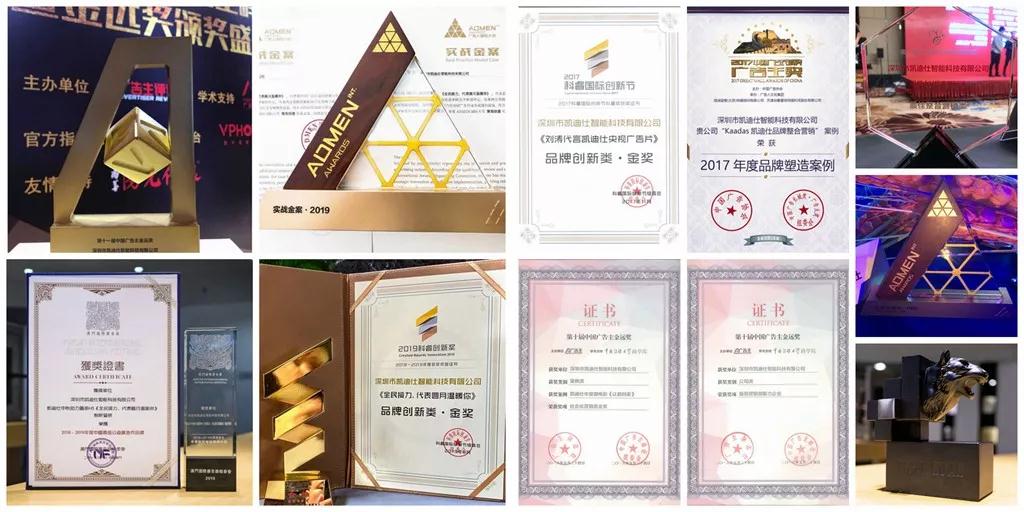 一(yi)直以(yi)來,Kaadas凱迪仕不斷(duan)創新(xin)并提升品(pin)牌影響與價值,對推動(dòng)行業髮(fa)展(zhan)做出了(le)突出貢獻。截止2019年(nian),凱迪仕在(zai)廣(guang)告屆已包攬中(zhong)國(guo)廣(guang)告至高(gao)獎長(zhang)城(cheng)獎、虎嘯獎、ADMEN國(guo)際(ji)大(da)獎、金遠(yuǎn)獎、科(ke)睿獎、金蜜蜂、金比特、澳們(men)國(guo)際(ji)廣(guang)告節(jie)創新(xin)營(ying)銷案例大(da)獎等(deng)多(duo)項(xiang)業界權威榮譽。