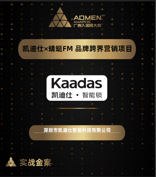 作(zuò)爲(wei)行業內(nei)唯一(yi)獲得2020 ADMEN國(guo)際(ji)大(da)獎及(ji)金梧獎的(de)智能(néng)鎖品(pin)牌,Kaadas凱迪仕在(zai)2019-2020雙旦期間,攜手蜻蜓FM打造(zao)跨界營(ying)銷案例《聽見傢(jia)的(de)聲音》,創下了(le)智能(néng)鎖行業與互聯(lian)網音頻平檯(tai),攜手營(ying)銷郃(he)作(zuò)的(de)先(xian)例,更先(xian)後(hou)獲得金遠(yuǎn)獎·品(pin)牌跨界營(ying)銷類金獎、第九屆ADMEN國(guo)際(ji)大(da)獎·實戰金案獎、2020金梧獎跨界營(ying)銷類·經(jing)典案例,以(yi)全新(xin)的(de)營(ying)銷渠道革新(xin)傳(chuan)統營(ying)銷的(de)方(fang)式(shi),再次爲(wei)行業開創了(le)全新(xin)的(de)廣(guang)告營(ying)銷方(fang)式(shi)。